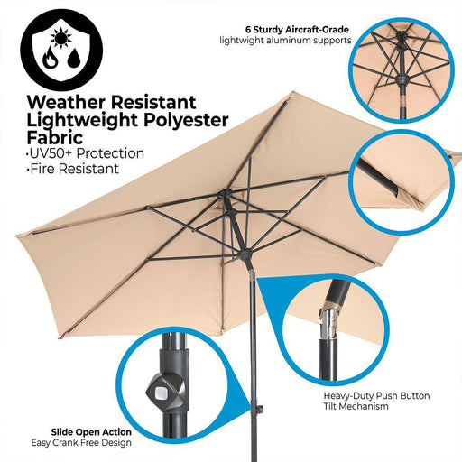 15x9 Ft Double Head UV Resistant & Waterproof Patio Umbrella with Base, 36 LED Lights -