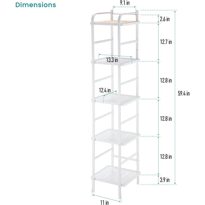 5 Tiers Storage Racks and Shelving, Tall and Slim Bamboo Accent with Steel Frame
