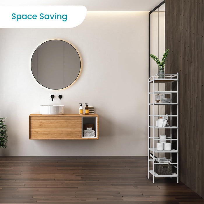 - Adaptable to Your Home – The smooth rounded edge design complemented with the white finish and high-quality bamboo accent makes for an elegant all-around storage solution for your home. The slim shaped design will also allow for you to place in narrow spots around your home or office.