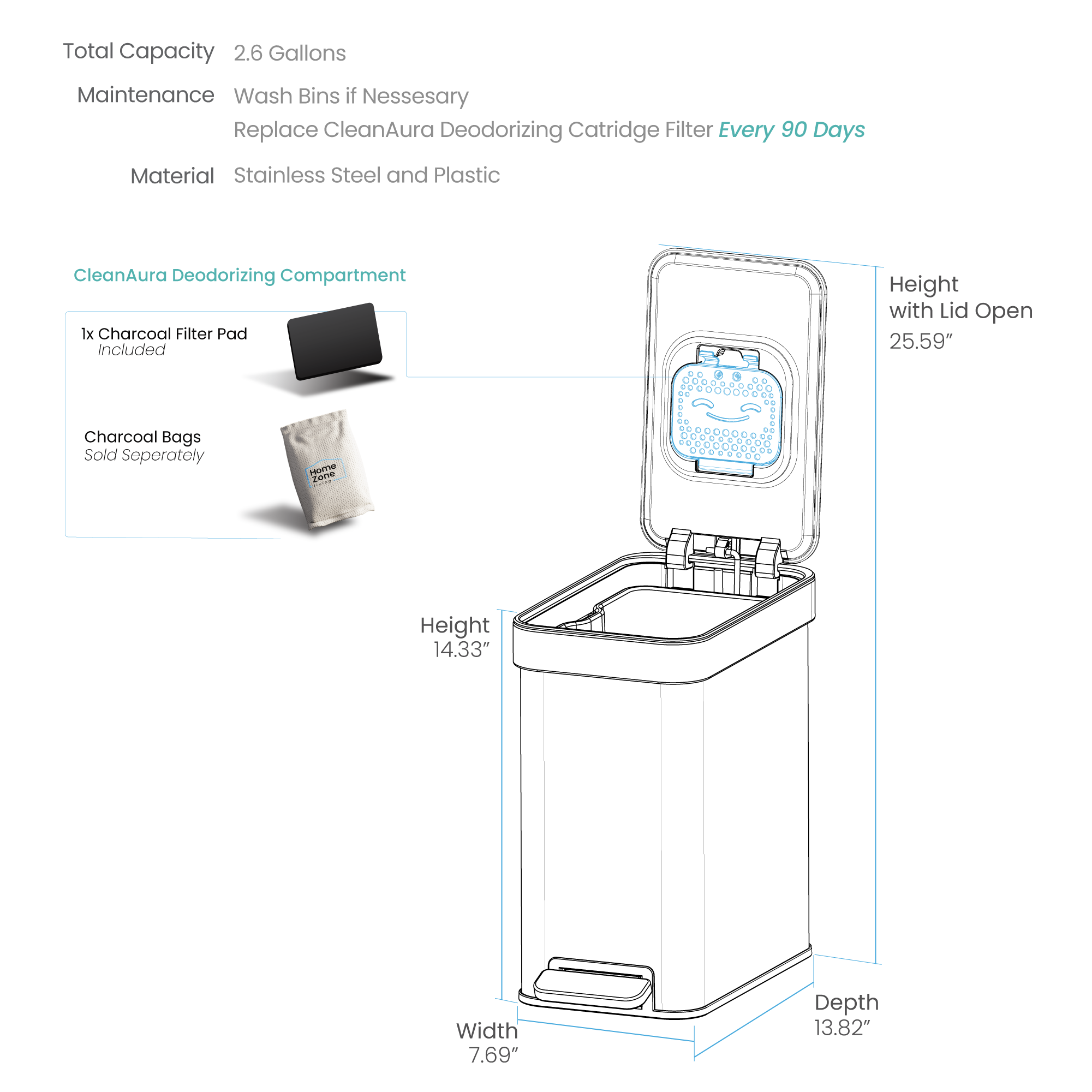 - The quiet, slow-closing lid not only minimizes noise but also neutralizes odors with its built-in CleanAura compartment, keeping your kitchen fresh