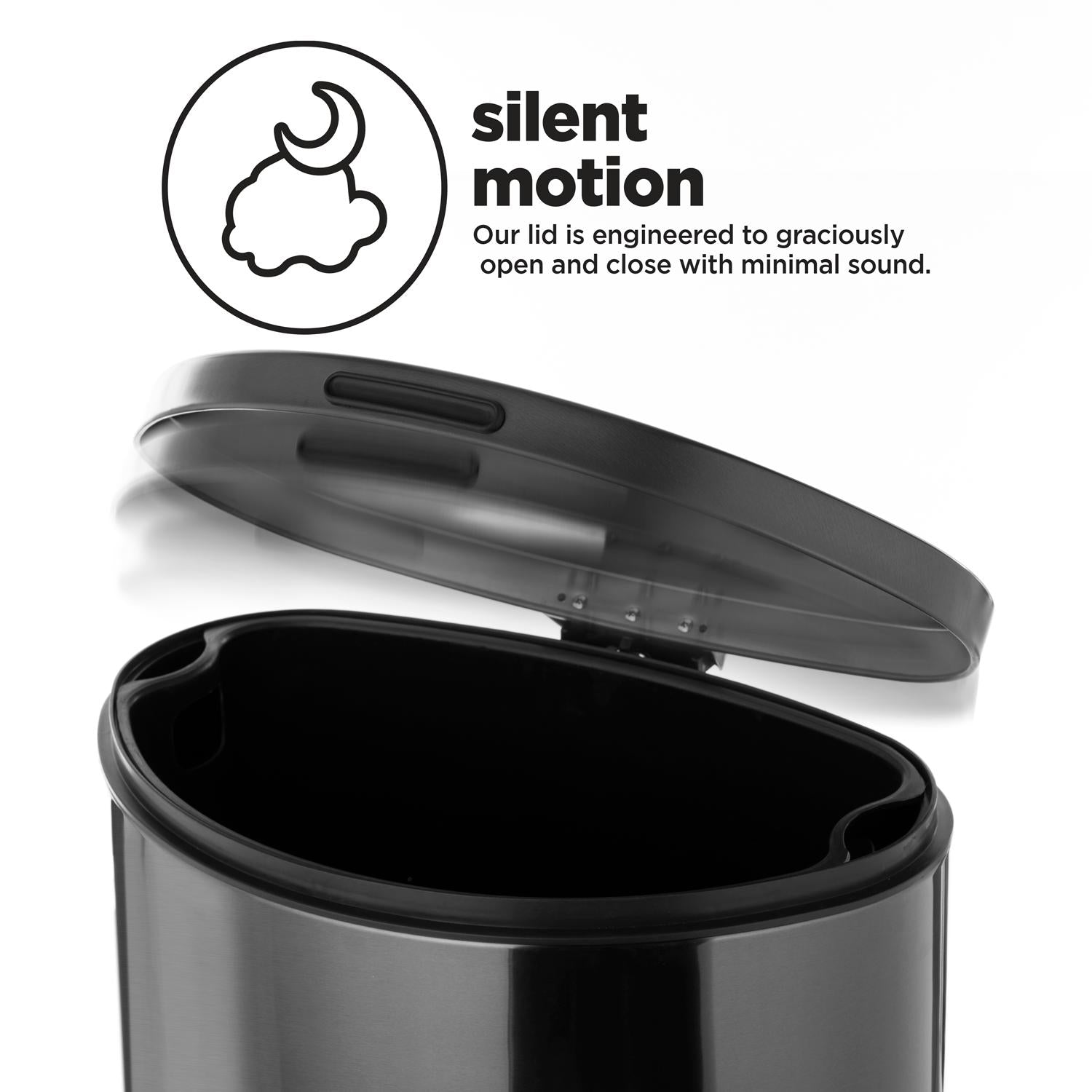 - Silent motion β Our wider reinforced hinge controls the motion of the lid to ensure soft and secure closure each time. To keep the lid open, simply tap the lid beyond the normal open length when needed for greater tasks.